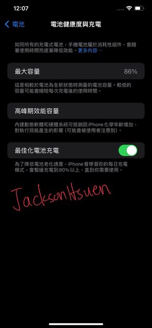 電池健康度86%