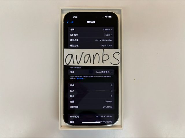 2. 機身序號與盒裝序號一致,IOS版本17.0.3,保固期內有回原廠更換螢幕。