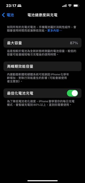 電池健康度87%、全程貼保貼、裝手機殼使用。