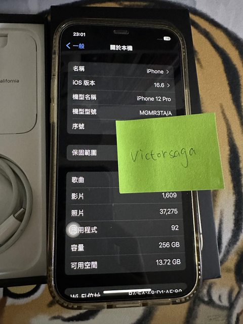 [型號] IPhone 12 pro 256g 金 [規格] 256g 金 [保固] 已過保 [盒裝配件] 原盒+充電線 [售價] 13000 [交易方式/地點] 信義區/板橋 [連絡方式] LineId: victorsaga [商品照/補充說明] 健康度86%,無維修、無待修,使用時皆有使用保護貼+保護殼。
