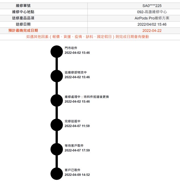 2022/4/9 於高雄SA更換全新左右耳