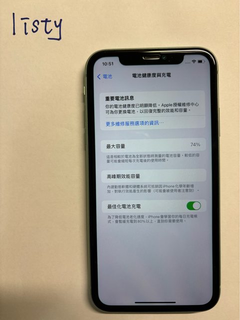 原廠電池沒換過,健康度74%