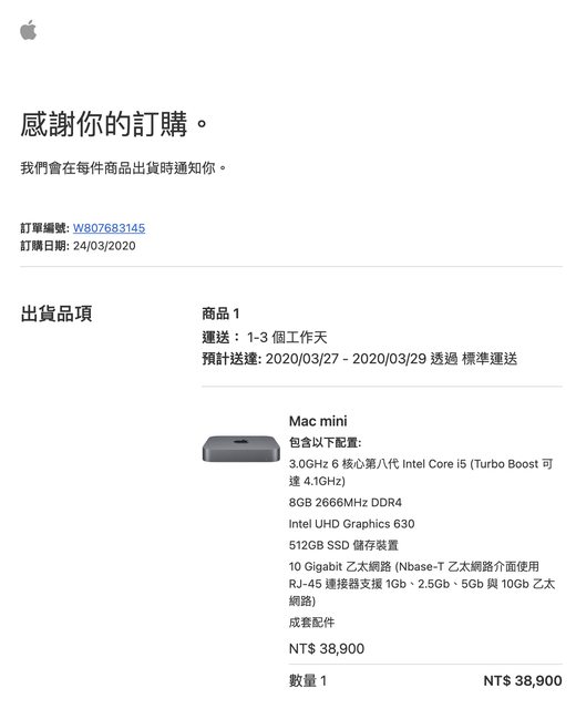 標題[販售] 台北 Mac mini 2020 i5/32G/512G/10GbE