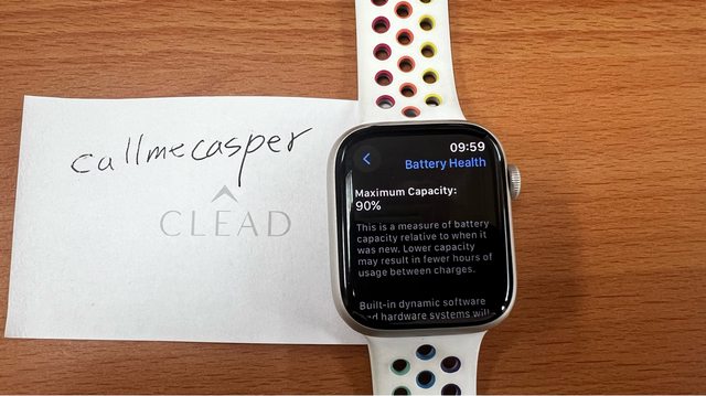 錶帶已經換成照片中的原廠錶帶,有正常使用痕跡,S/M 尺寸,電池健康度90%