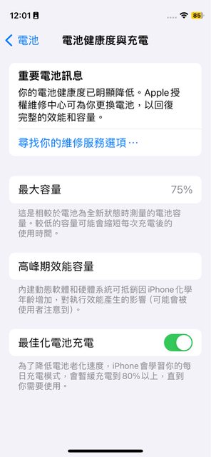 電量75% 無維修紀錄
