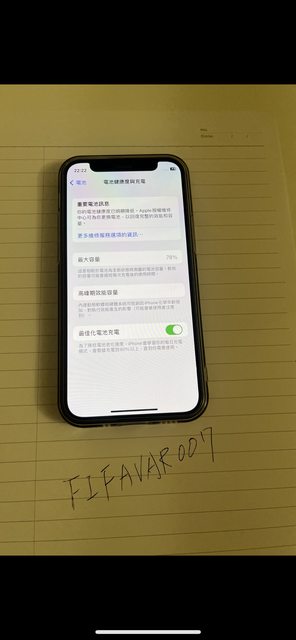 電池健康度78%,背後有犀牛盾的蜂巢印,附贈一張亮面兩張防窺保護貼與變黃的透明保護殼