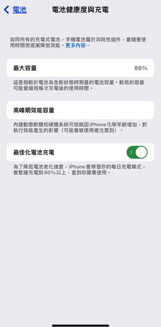 電池健康度86%