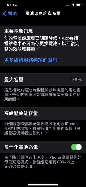電池健康度76%