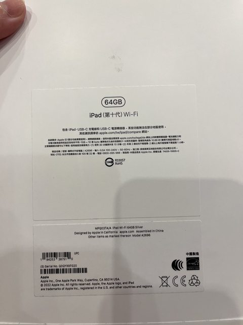 標題[販售] 新竹 全新 iPAD 10 64GB WiFi 銀色