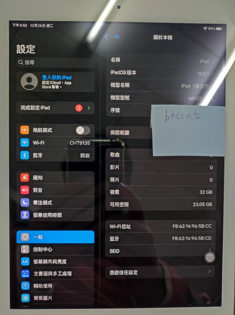 標題[販售] 全國 ipad 5 32G WiFi版,電池健康度92%