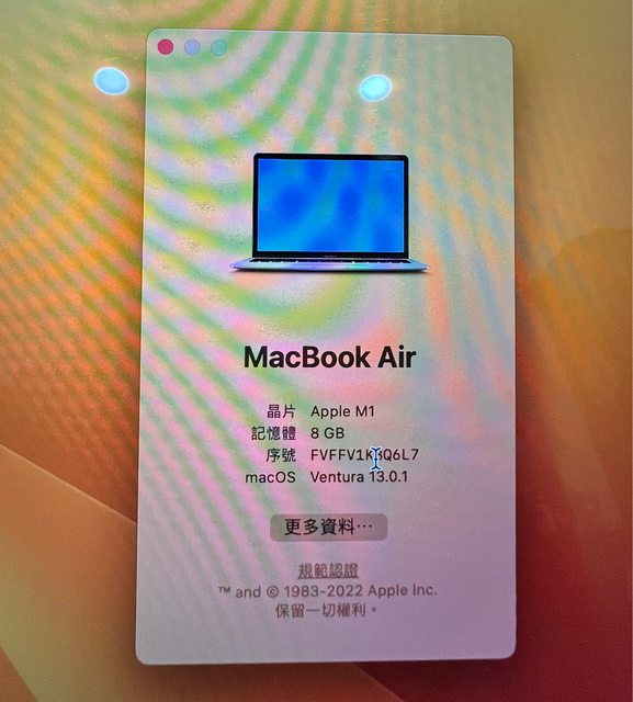 標題[販售] MacBook Air 13吋 M1 8G/256G 銀色