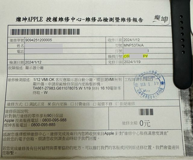 提供維修證明,整新機享有原廠90日保固。