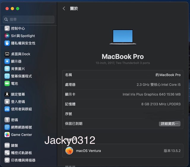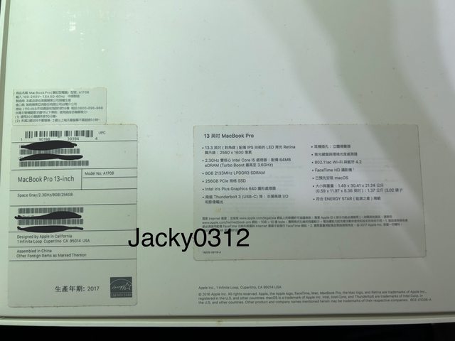 標題[販售] 2017 MacBook Pro 256G A1708