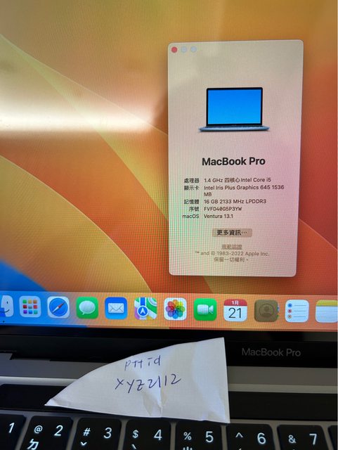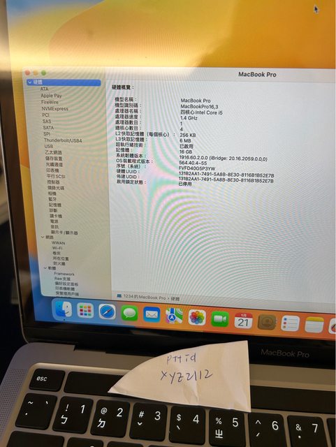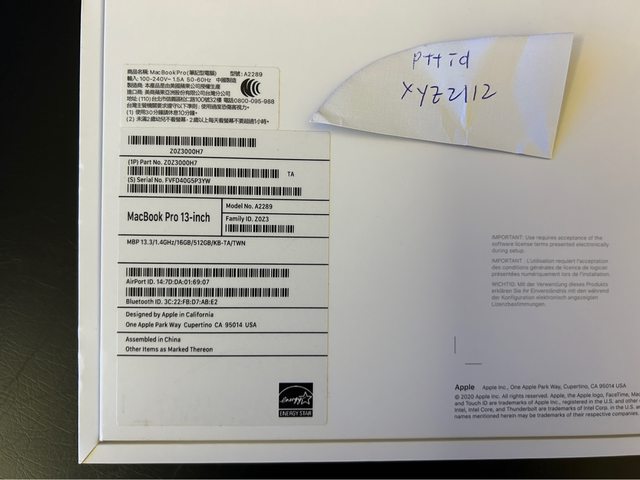 [型號] MacBook Pro(13 英寸,2020 年,兩個 Thunderbolt 3 連接埠)touchbar版