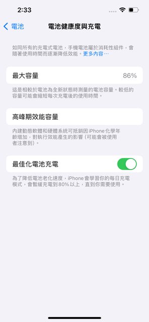 2.電池健康度86%