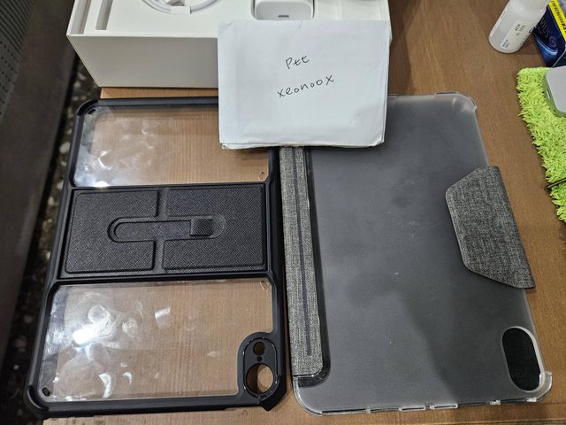 [盒裝配件] 盒裝配件(變壓器、充電線)全在,另附翻蓋保護套及支架保護殼