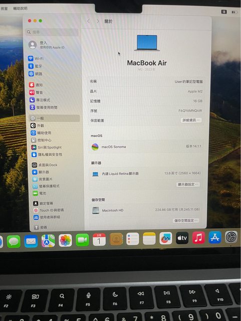 標題[販售] 台中MB Air M2 16g/256g 13吋 太空灰色