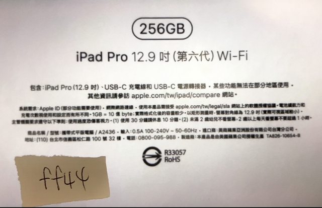 標題[販售] 臺北市 ipad pro 12.9 wifi 256G 第六代