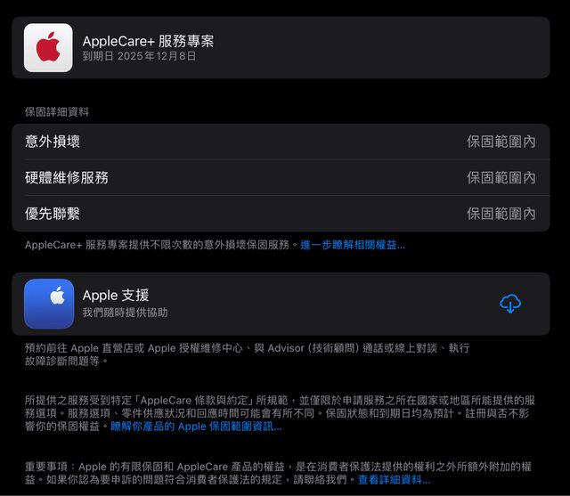 [保固] AppleCare+ 2025/12/8 (可協助轉移)