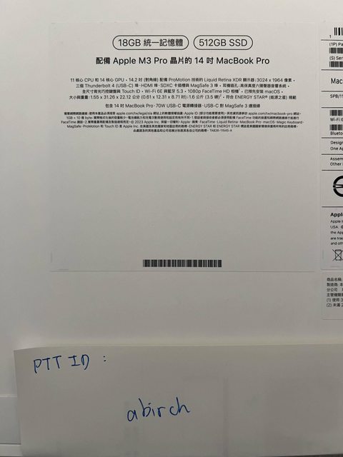 標題[販售] 新竹 MacBook Pro M3 14吋 太空黑 全新