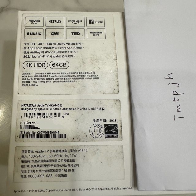 標題[販售] 全國 Apple TV 4K 64G第1代
