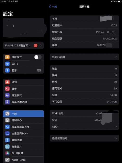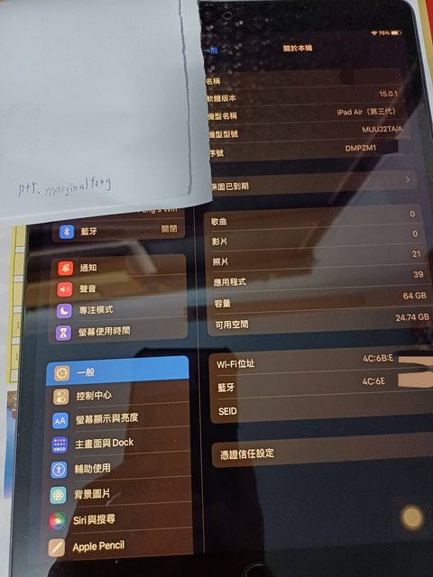 標題[販售] 高雄面交 iPad air 3代 wifi 64G 太空灰