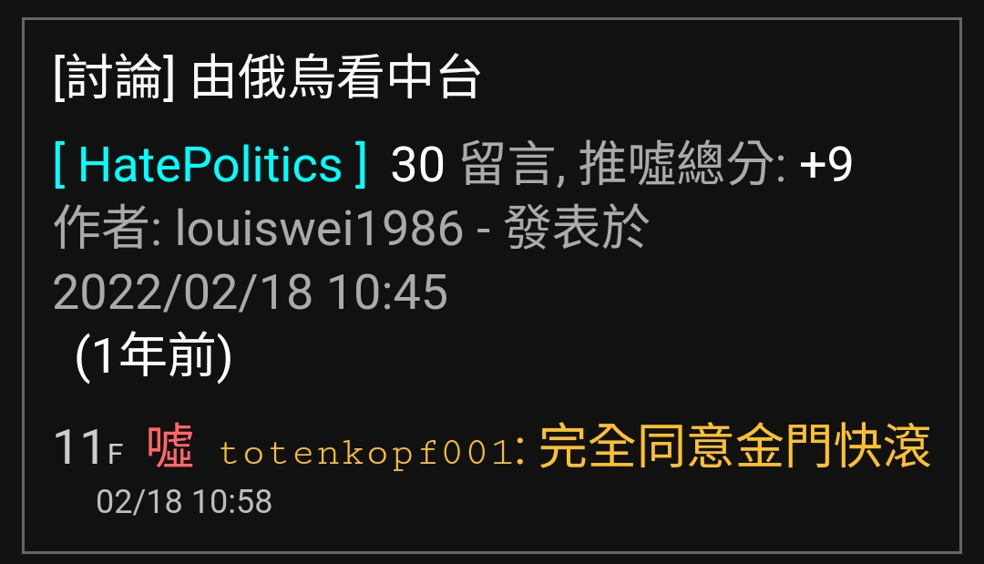 → peterlee97 : 八卦政黑滿滿一模一樣的言論 跟你或你不喜歡的給他2 06/29 15:07
