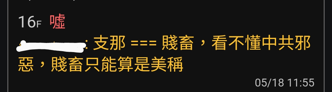 → geordie : “支那”吵架的話,還是去政黑吵比較好吧 07/03 07:33
