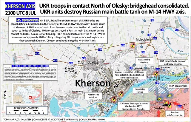 地圖上顯示烏軍有建立浮橋?待實際畫面證實。