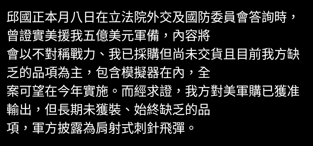 → geordie : 不過本篇是軍援,跟軍購關聯性應該不大 07/29 10:15