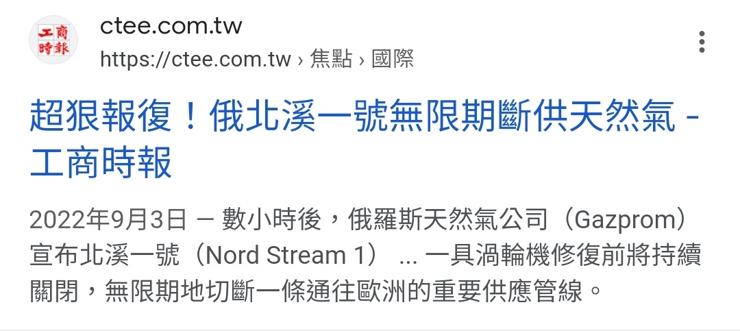 → triplee : 俄羅斯那時已經實際停供裹脅歐洲未果 歐盟在北溪被 08/01 15:55