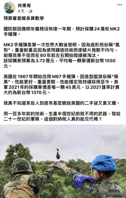 推 utn875 : 手榴彈如果評估有戰備急用,外購高性能的合用品, 09/04 17:05