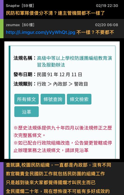 → jobli : 只是對於內政部要規畫民防團隊,國防部則簡短回應尊 02/20 13:42