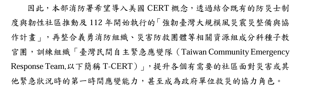 → jobli : 所以等實施計劃才準,因為如果是內政部的民防團就跟 02/20 13:17