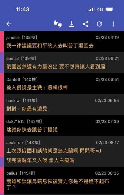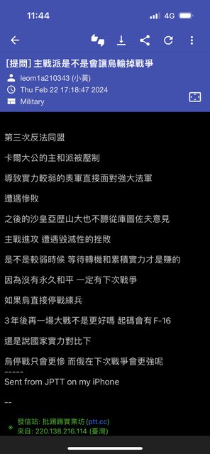 → PTTHappy : 我都留白沒引用誰的原文 我文中還具體針對投降言論 02/23 12:43