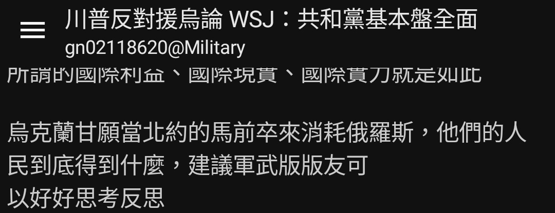 → dorozo779 : 仇美最愛講的美戰爭失利案例居然這時就被遺忘了? 02/28 21:04
