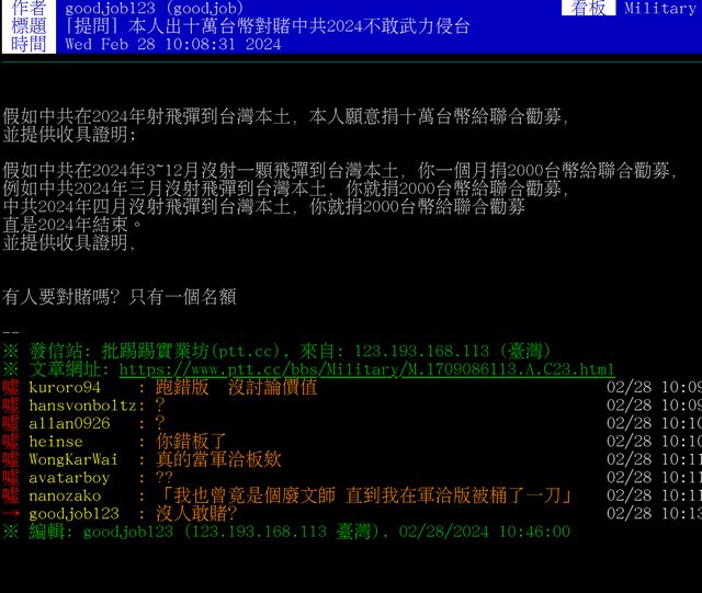 A.討論板友的兩岸政治立場、思想。