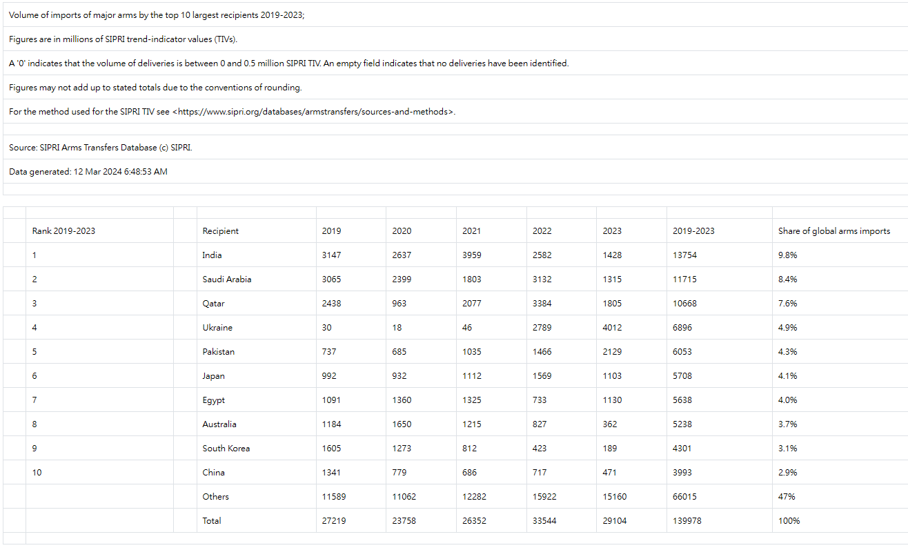 SIPRI的研究報告顯示