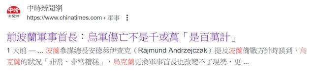 → WongKarWai : 中時說烏克蘭傷亡是以百萬計 供參考 :) 03/22 01:04