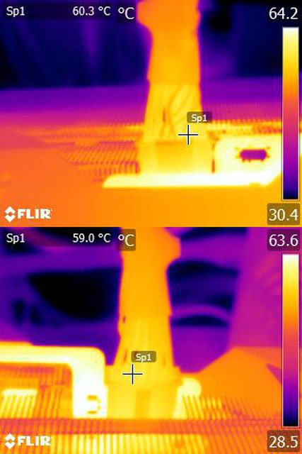 ▼執行FURMARK 30分鐘後,電源端插頭的紅外線熱影像圖(附註:安裝位置環境溫度會影