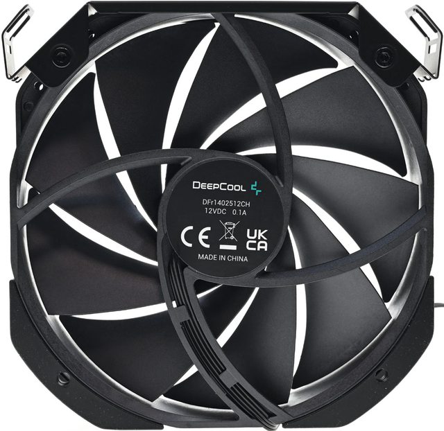 ▼中間風扇尺寸為140×140×25mm,採用FDB軸承和6極馬達,9葉片扇葉軸心有商標