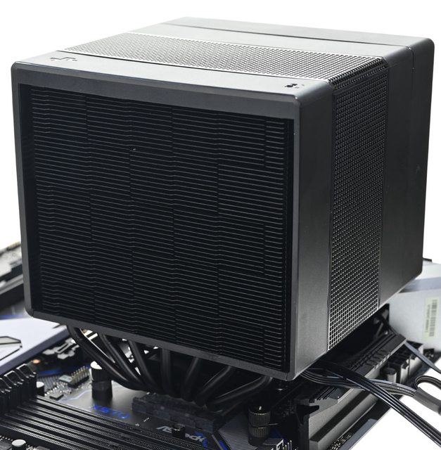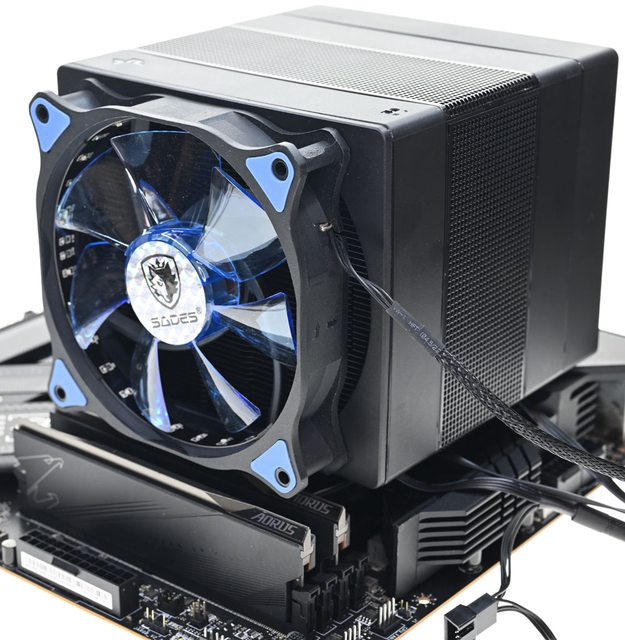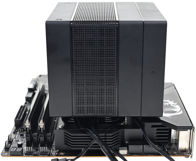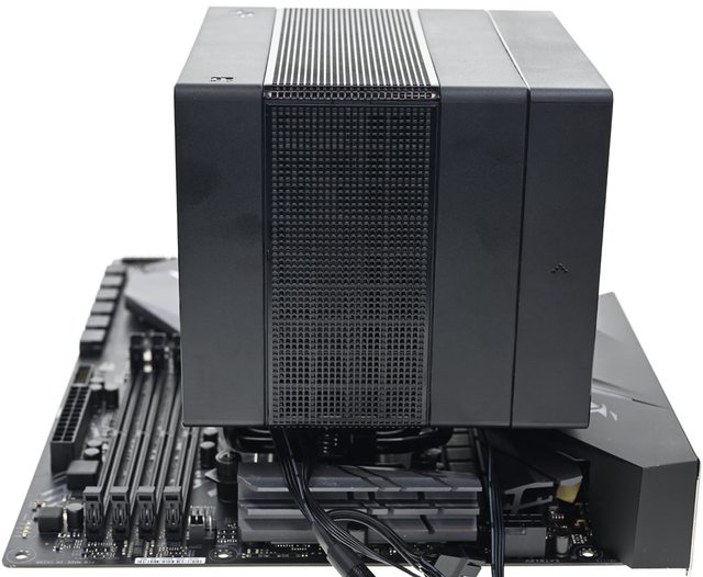 ●黑色外觀高度164mm散熱器,採向後偏移設計,不阻擋前方記憶體燈光及拆裝