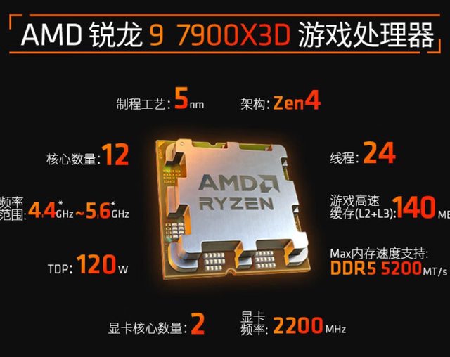 參數方面,R9 7900X3D 為 12 核 24 執行緒設計,加速頻率 5.6GHz