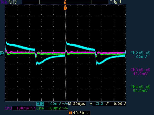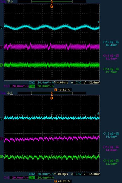 輸出下12V/5V/3.3V各路低頻漣波分別為15.6mV/16.4mV/15.2mV