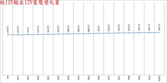 合全負載輸出下12V/5V/3.3V各路低頻漣波分別為16.4mV/18.4mV/15.2mV;於純12V全負載