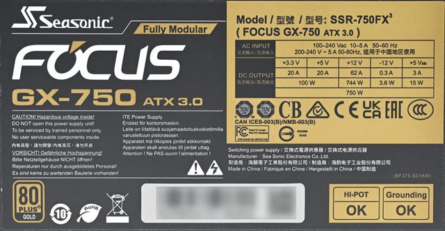 標題[開箱] Seasonic FOCUS ATX 3.0 GX-750 750W