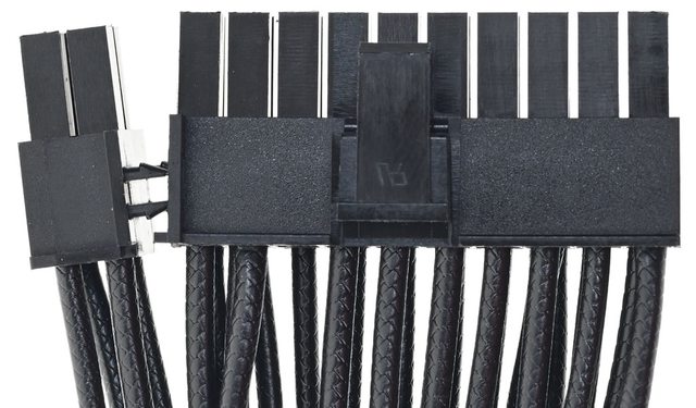 ○14公分短機身全模組化設計,黑色線材在外皮壓印傘繩編織線花紋。提供1個ATX 20+4P