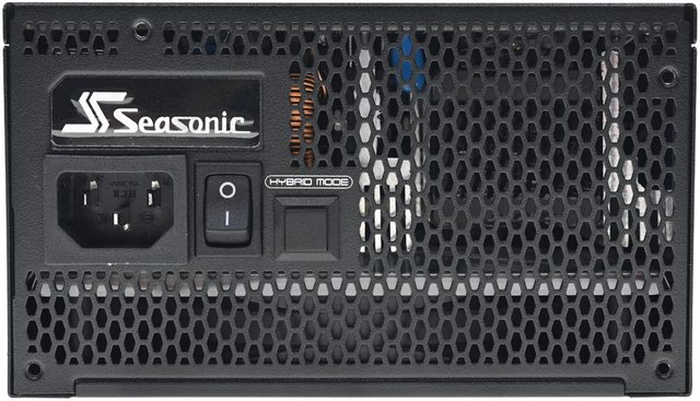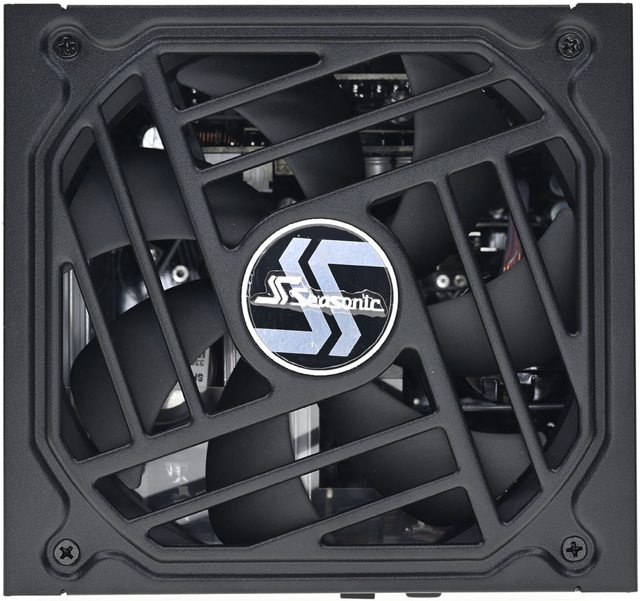 ▼直接在外殼上沖壓大型開孔風扇護網,中間有Seasonic商標銘牌