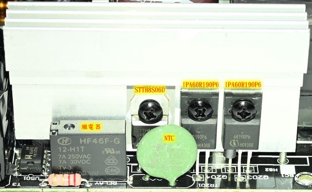 ○APFC MOSFET採用Infineon,APFC二極體採用ST,一次側MOSFET採用Greatpower,二次