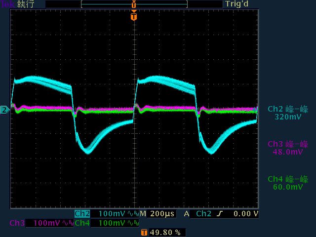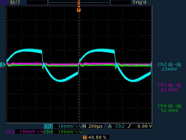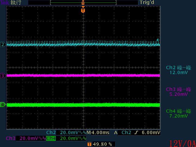 ○輸出無負載時12V有鋸齒狀漣波;輸出12V/2A以上12V漣波波形固定,只改變振幅。於綜